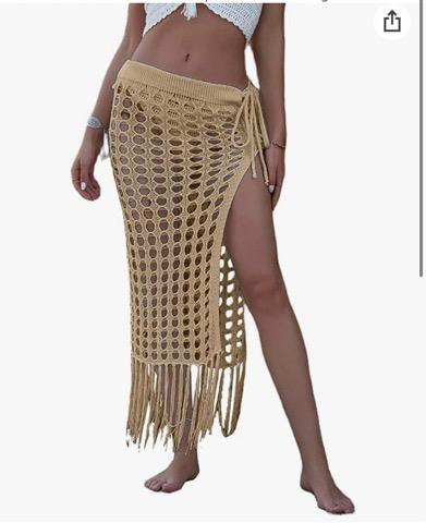 Womens beige skirt cover up. So stunning for beach or pool party.