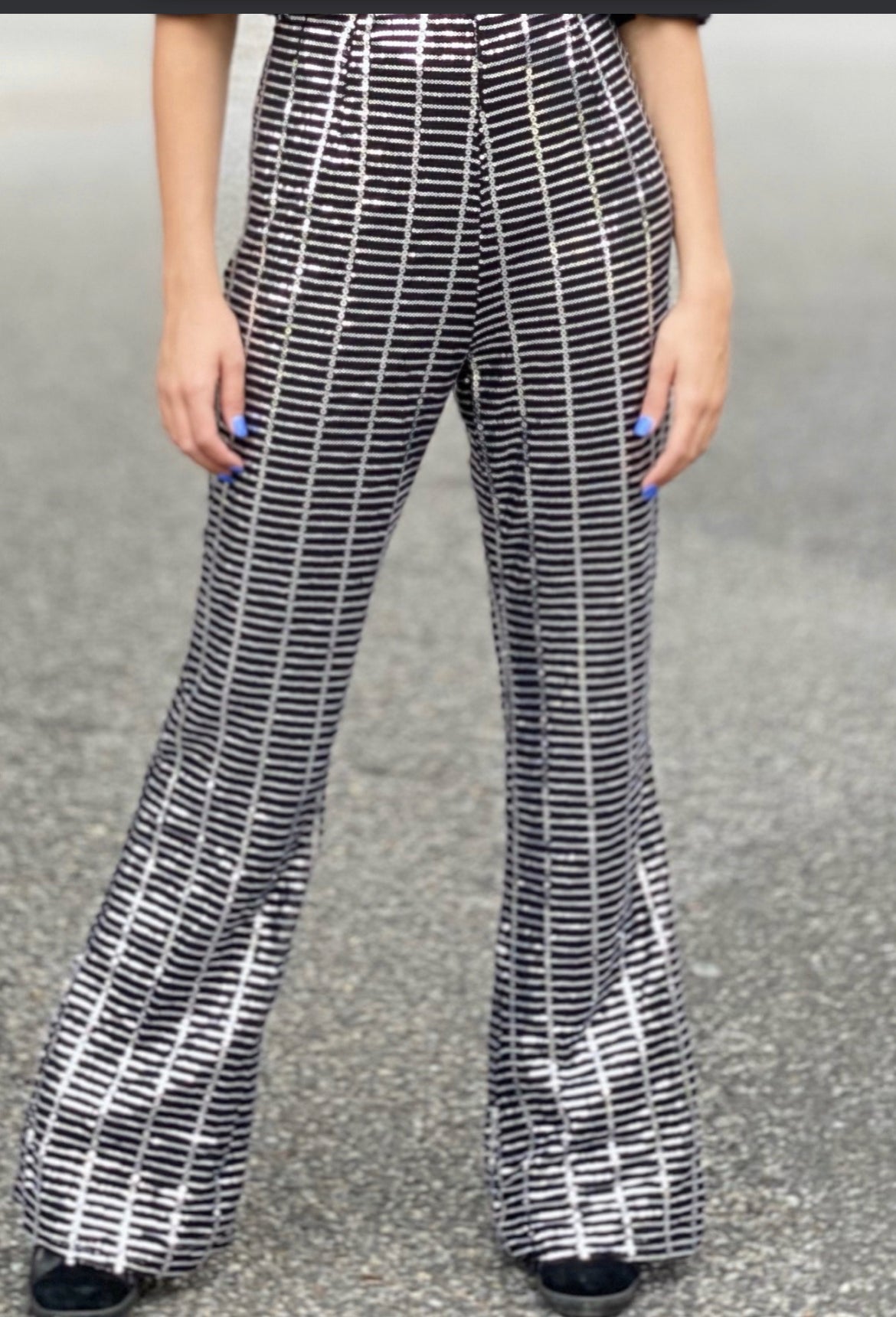 Silver Sequin Wide Leg Pantsuits