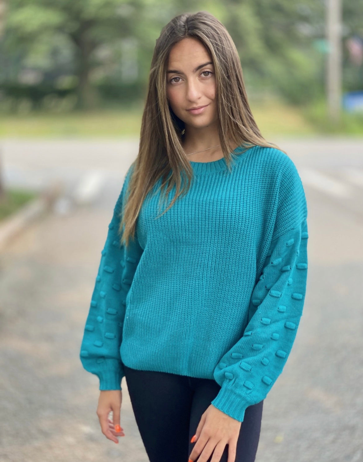 Women's Long sleeve sweater. Super cute design on sleeve comes in blue and orange